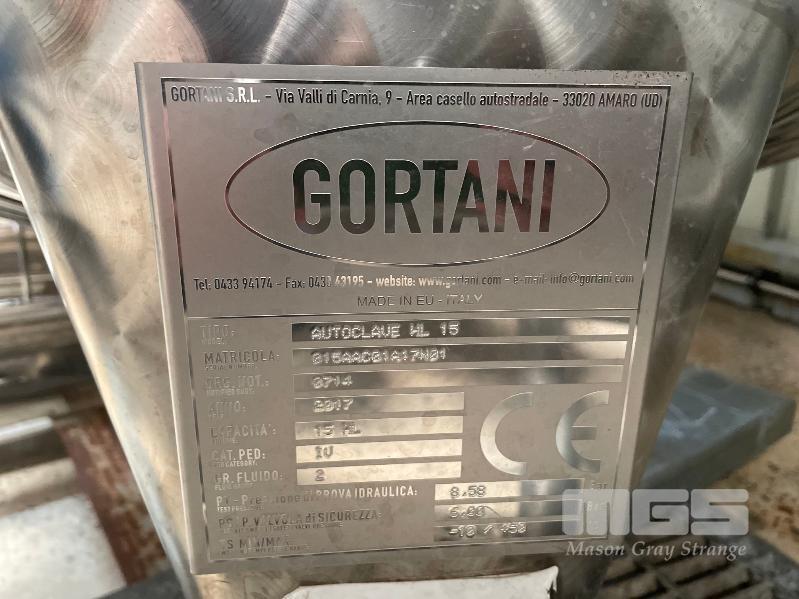 GORTANI 15,000L STAINLESS STEEL INSULATED PRESSURE VESSEL, MOD: AUTOCLAVE HL 15, DOM: 2017, SERIAL: 015AAC01A17N01, TEMP: -10 / +50, TEST PRESSURE: 8.58 BAR DIGITAL TEMP PROBE, SKID BASE PDF MANUAL INCLUDED NOTE: LOCATED AT SELLICKS HILL, SA, INSPECTION BY APPOINTMENT ONLY BUYERS PREMIUM: 11%