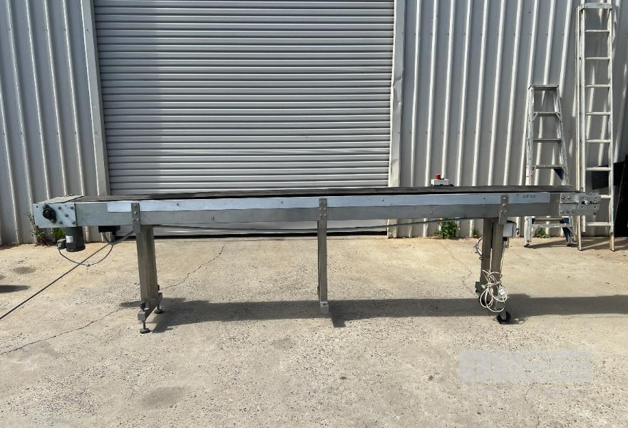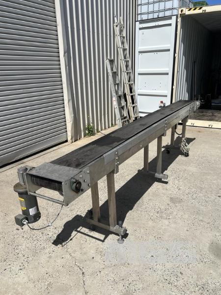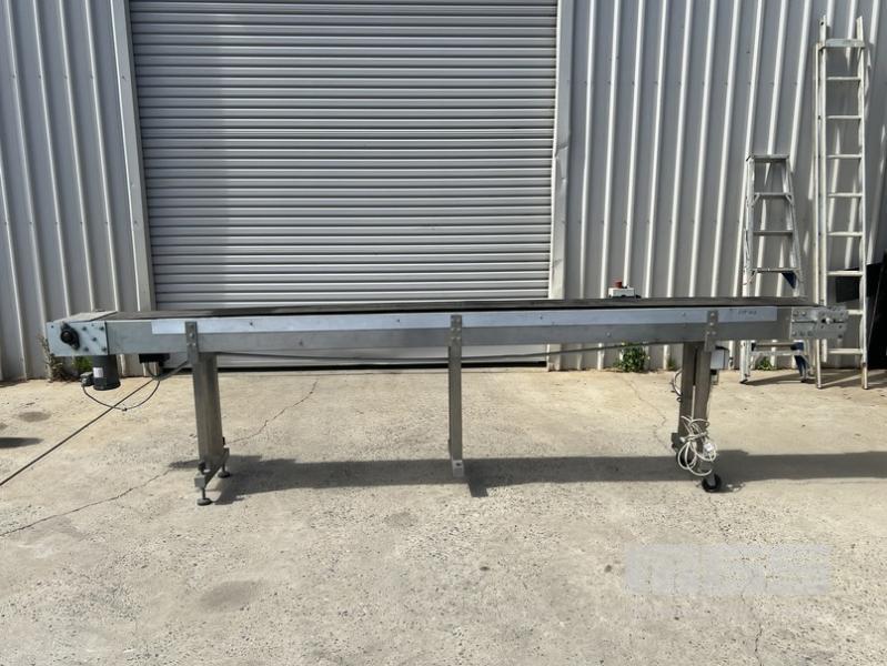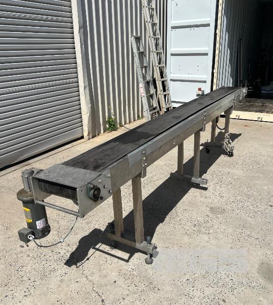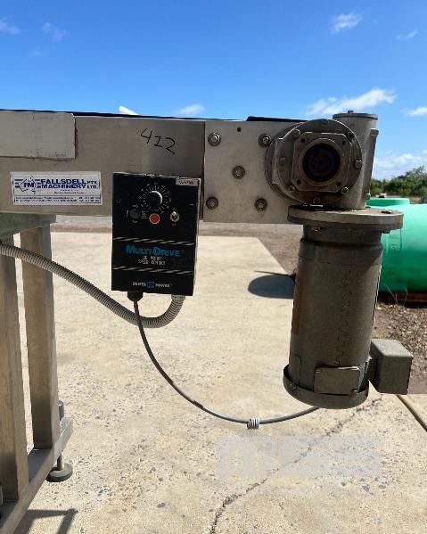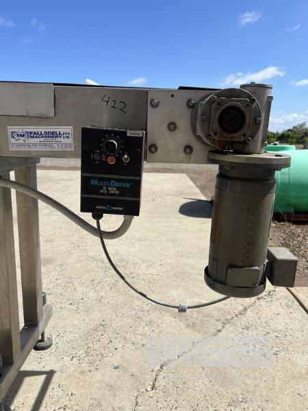 FALSDELL MACHINERY PTY LTD. 3.6m CONVEYOR, 400mm WIDE BELT, SPEED ADJUSTABLE CONTROLLER 240V 10 AMP PLUG NOTE: LOCATED AT SELLICKS HILL, SA, INSPECTION BY APPOINTMENT ONLY