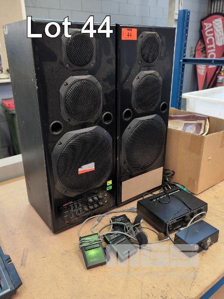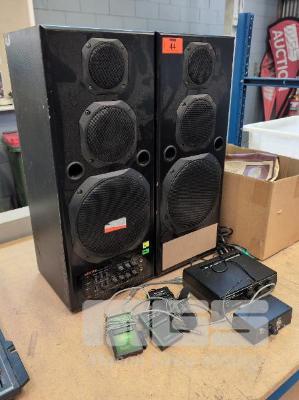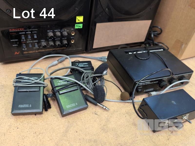 KARAOKE SPEAKER SYSTEM, AIKOTEC. REALISTIC 3-CHANNEL FM WIRELESS MICROPHONE SYSTEM ETC