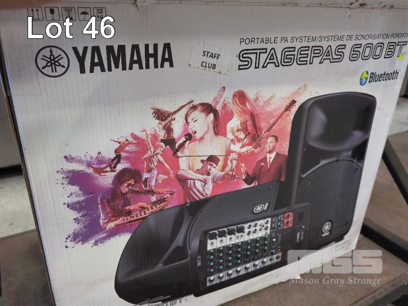 YAMAHA STAGEPASS 600BT PORTABLE BLUETOOTH PA SYSTEM AND 4 X SPEAKER STANDS ETC.