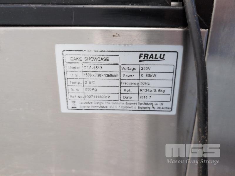 FRALU 3-SHELF RETAIL CAKE DISPLAY. MODEL DZF-1513. 1,500 X 730 X 1,350 MM (W D H). 240V. ** ALL FAULTS **