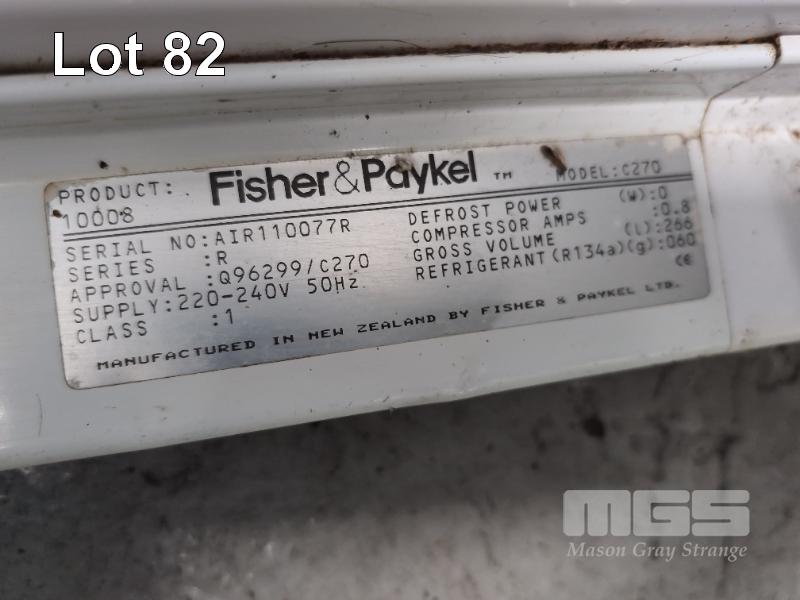 UPRIGHT 266 LITRE SINGLE DOOR REFRIGERATOR. FISHER & PAYKEL C270. 240V.