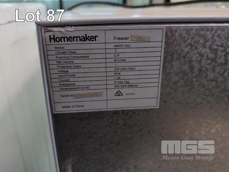 UNDERBENCH 80 LITRE FREEZER. HOMEMAKER MODEL HTMF-10Q. 240V.