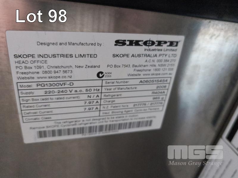 TWO-DOOR COMMERCIAL UPRIGHT FREEZER. SKOPE MODEL PG1300VF-D. 240V.
