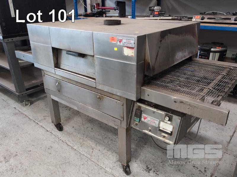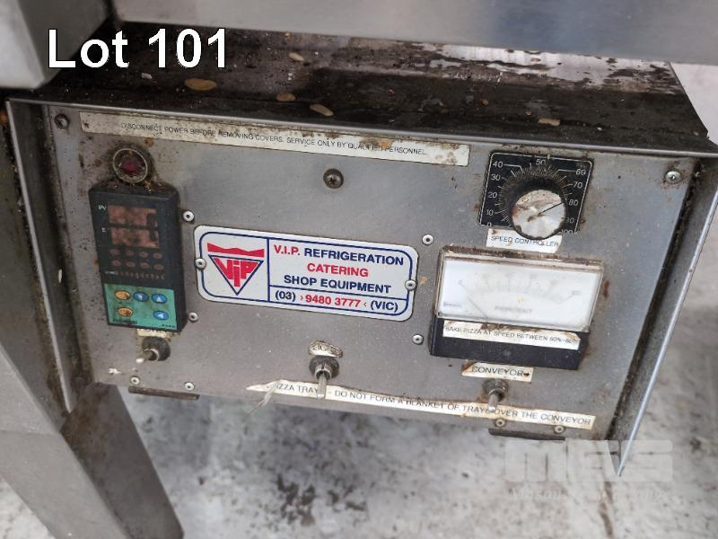 CONVEYOR PIZZA OVEN, VIP CATERING 815mm (W) CONVEYOR ON CASTORS, NATURAL GAS, 240V OVERALL 2400 (W) x 975 (D) x 1250mm (H)