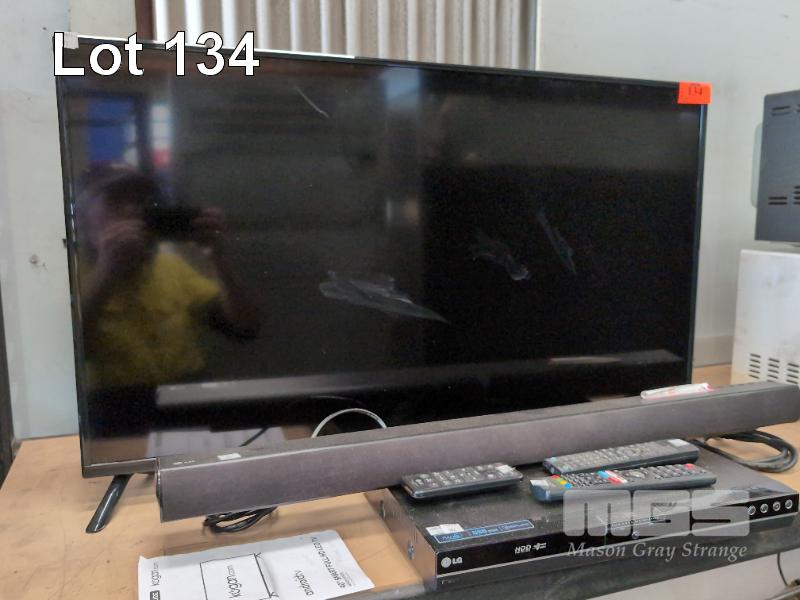 SMART TV WITH REMOTE, KOGAN, 40", HDD/DVD RECORDER WITH REMOTE, LG, RH397 & LG SOUNDBAR WITH REMOTE