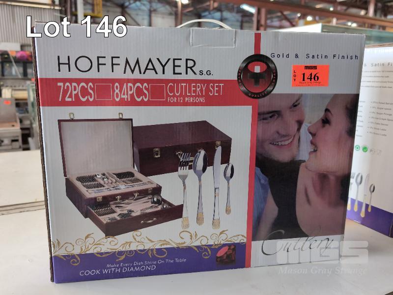 1 X NEW 72 PIECE CUTLERY SET IN GOLD & SATIN.