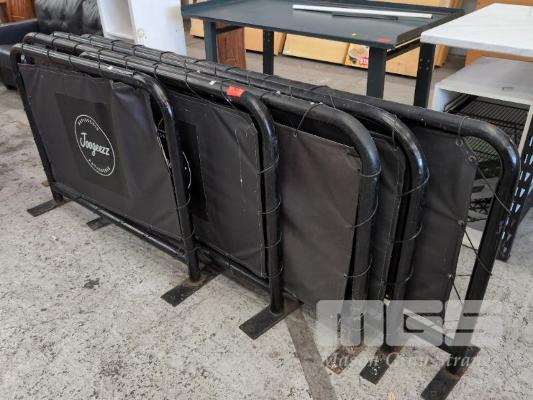 3 X OUTDOOR CAFE BARRIERS. 50 MM STEEL TUBE AND CANVAS. BLACK. 2,220 X 900 MM (W H) 2 X OUTDOOR CAFE BARRIERS. 50 MM STEEL TUBE AND CANVAS. BLACK. 1,100 X 900 MM (W H)