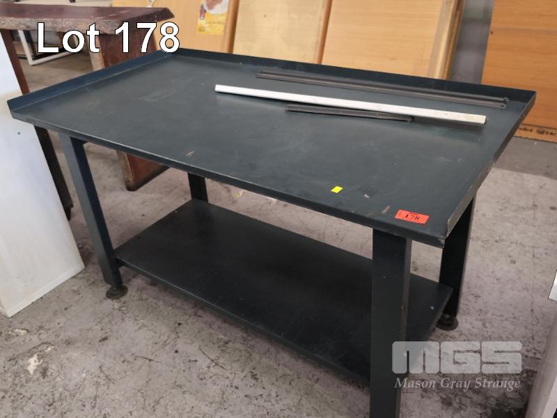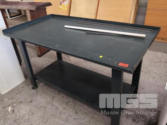 PAINTED STEEL BENCH. FOLDED EDGES WITH UNDER SHELF. 1,520 X 780 X 880 MM (W D H)