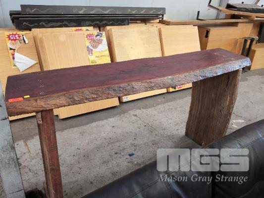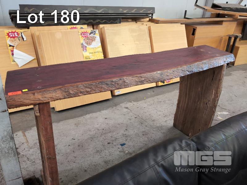 RUSTIC NATURAL TIMBER SAWN LOG SIDE BENCH. FABRICATED. 1,930 X 460 X 1,000 MM (W D H).