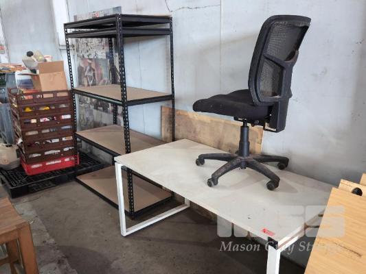 1 X 5-TIER ADJUSTABLE STORAGE UNIT 1,200 X 540 1,830 MM (W D H) 1 X GAS LIFT OFFICE CHAIR. 1 X OFFICE DESK 1,500 X 750 X 720 MM (W D H)