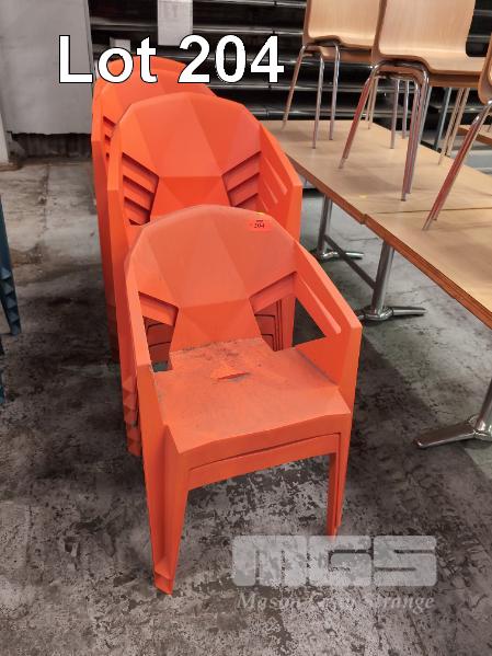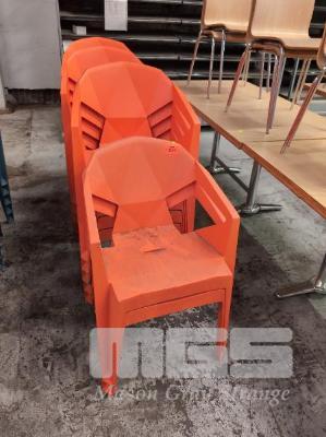 17 X PLASTIC OUTDOOR STACKING CHAIRS IN BURNT ORANGE.