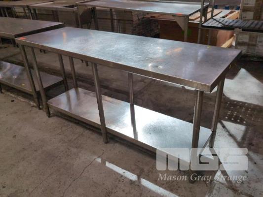 STAINLESS STEEL COMMERICAL KITCHEN PREP BENCH WITH UNDERSHELF. 1,830 X 610 X 890 MM (W D H)