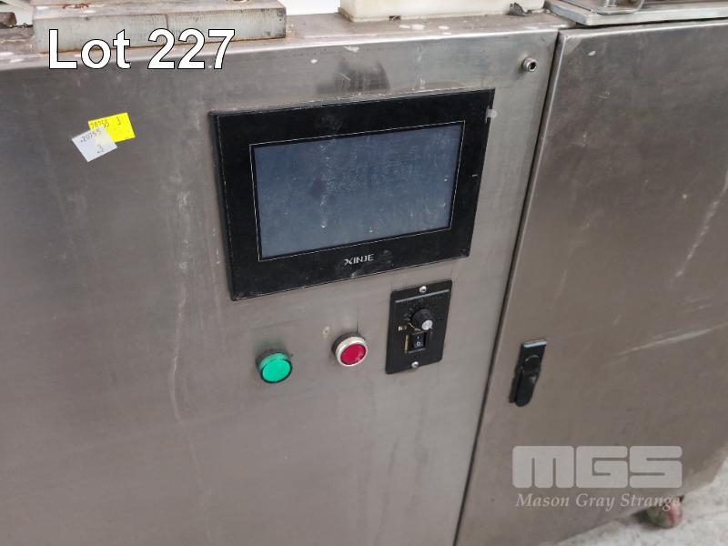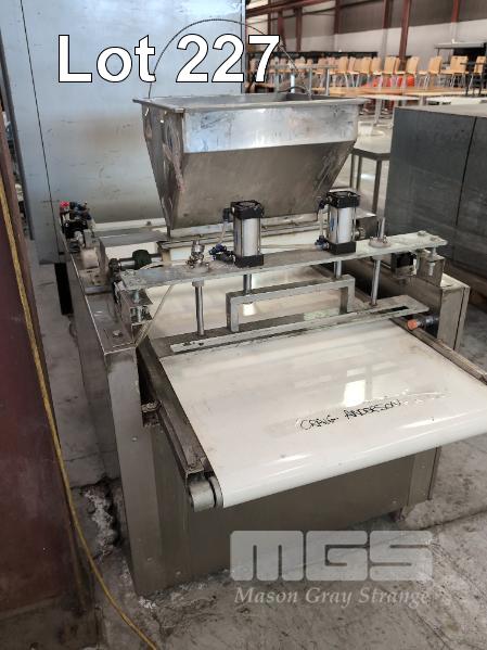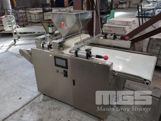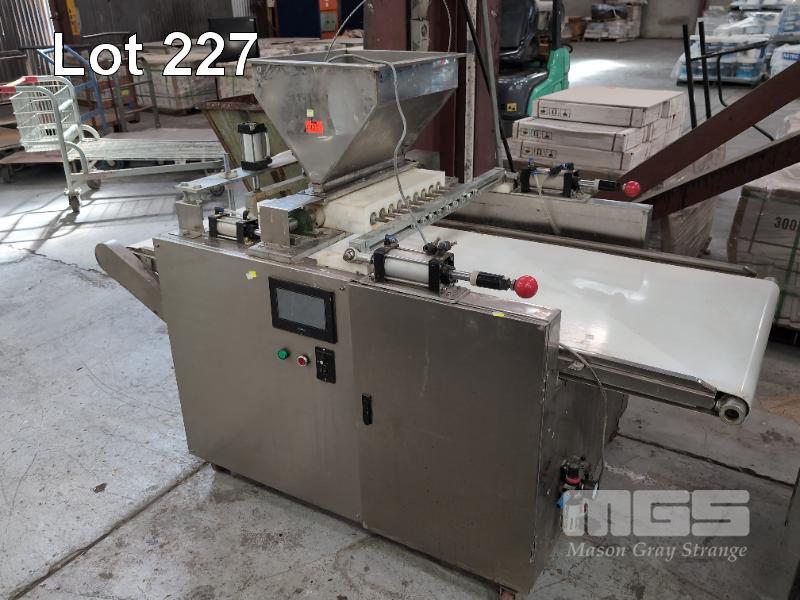 FOOD PRODUCTION, METERED DISPENSING UNIT, SUIT CAKE MIX, FOR CUPCAKES, MUFFINS ETC, TOP INFEED HOPPER, 9 HEAD DISPENCER, CONVEYOR FEED DIGITAL CONTROL UNIT, XINJE MOBILE, STAINLESS STEEL CLAD 240V