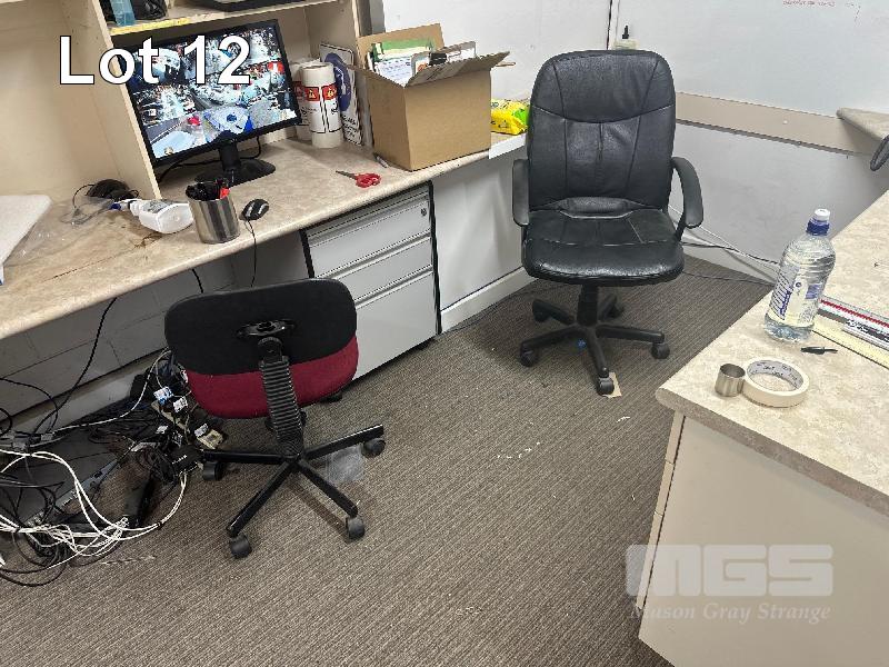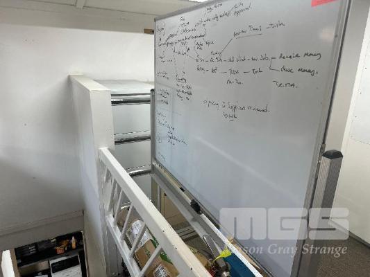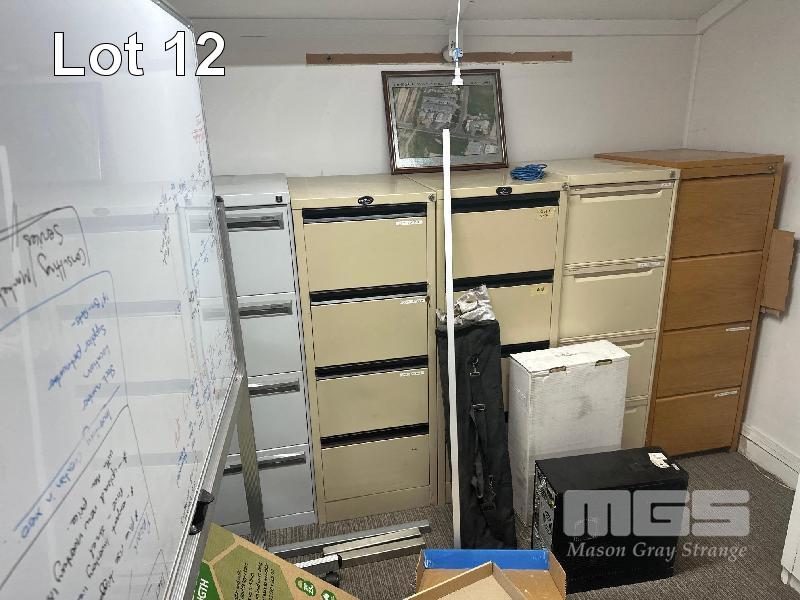 5 x FILING CABINETS, WHITEBOARD & 2 x OFFICE CHAIRS (UPSTAIRS)