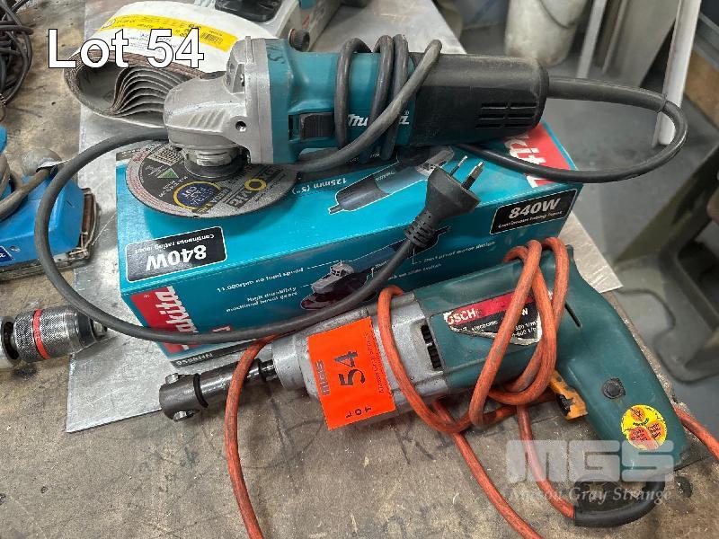 BOSCH DRILL & TIPPING HEAD & MAKITA GRINDER, 100mm