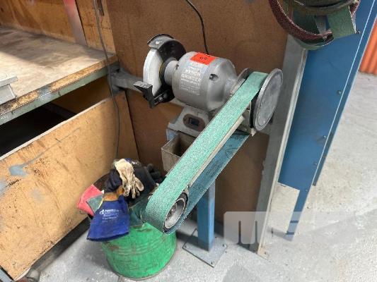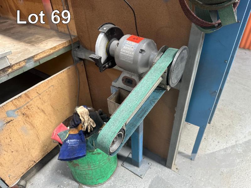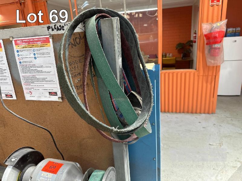 DE/GRINDER LINISHER, RYOBI HB GRC 18" LINISHER & BELTS ON PEDESTAL 240V