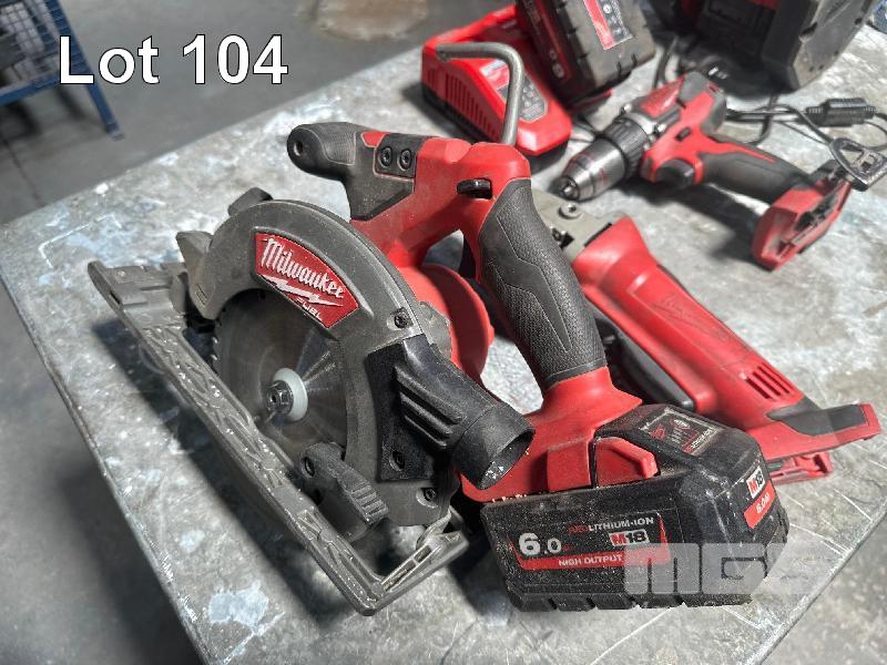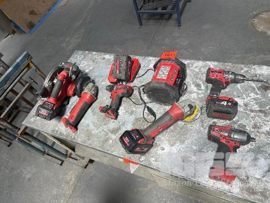 MILWAUKEE CORDLESS SET, 18V INCLUDING GRINDER, LED LIGHT, DRILL, CIRCULAR SAW, 2 x 6 AMP & 1 x 8 AMP BATTERY & CHARGER