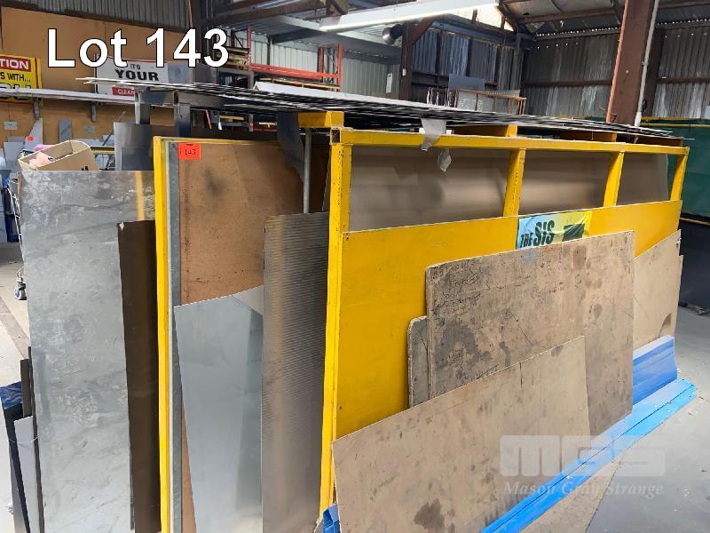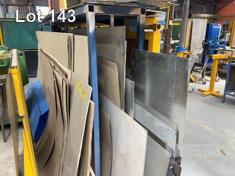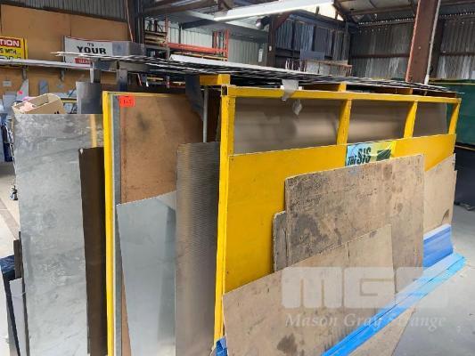 RACK & CONTENTS SHEETMETAL HUGE QUANTITY OFFCUT, GALV, ALLOY, STAINLESS STEEL INCLUDES 4 BAY RACK