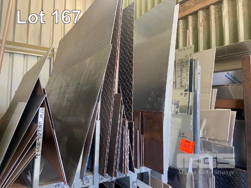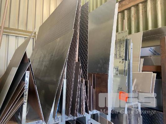 CONTENTS OF RACK STEEL SHEET, STEEL CHECKER PLATE, GALVANIZED SHEET, ALUMINIUM CHECKER PLATE FULL & PART SHEETS, WITH RACK
