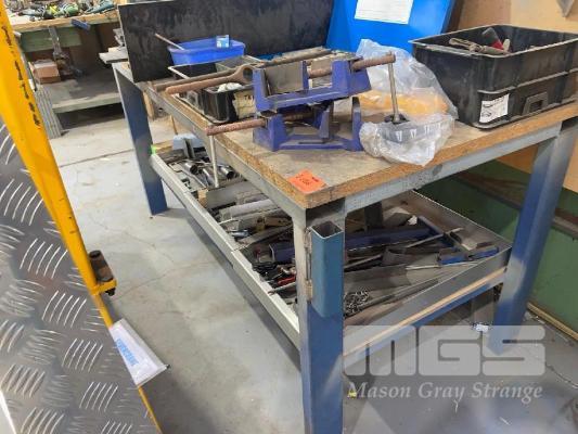 TUBE STEEL BENCH, 1800 x 900mm & CONTENTS UNDERNEATH