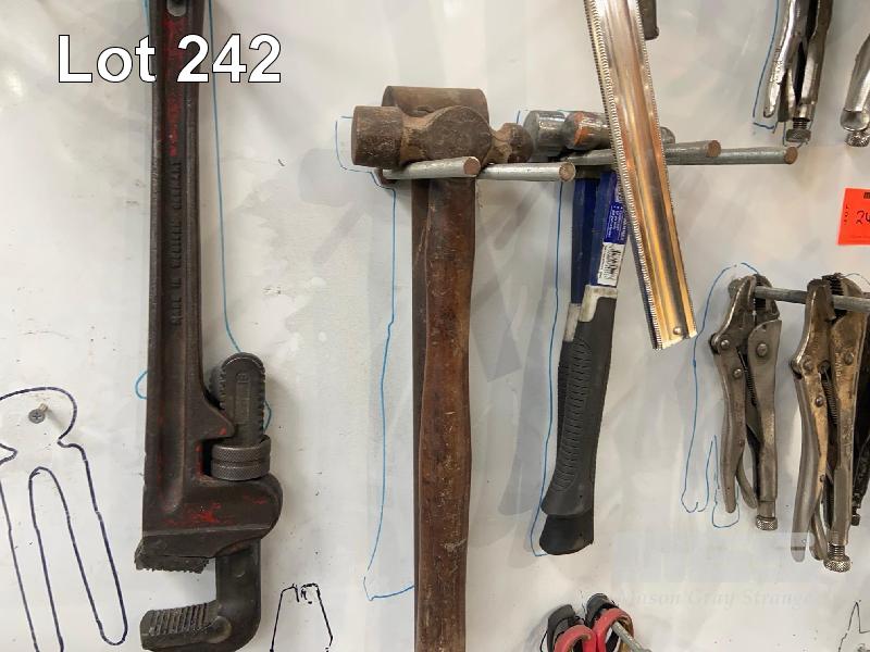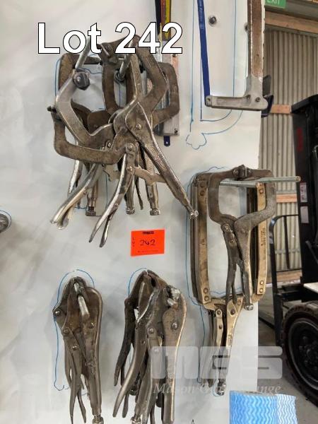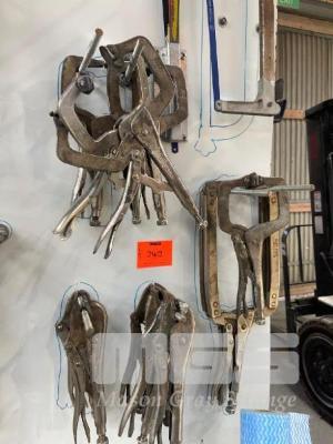 12 x WELD GRIPS, CLAMPS & HAMMERS ON SHADOWBOARD