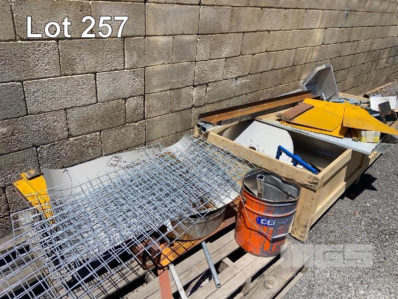CONTENTS OF YARD, SALVAGE OFFCUT STEEL ALLOY, MESH, FRAMES,