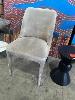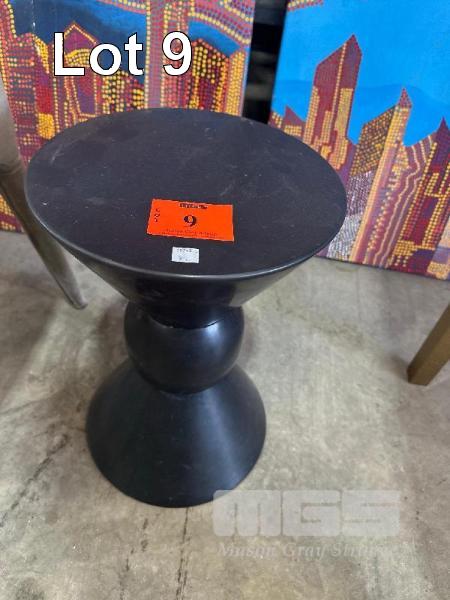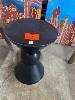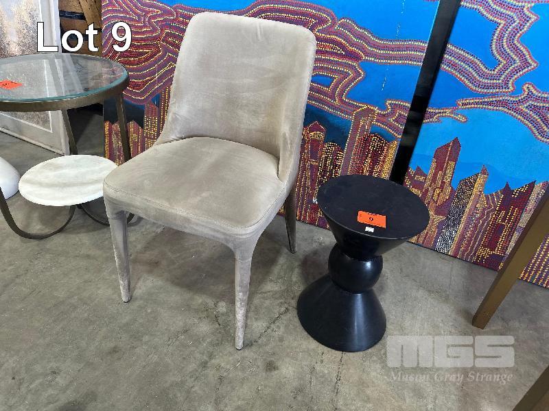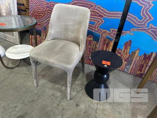 STONE SIDE TABLE, BLACK, 300 DIAMETER, x 460mm (H) WITH BEIGE FABRIC CHAIR