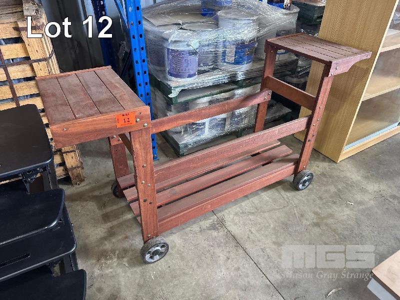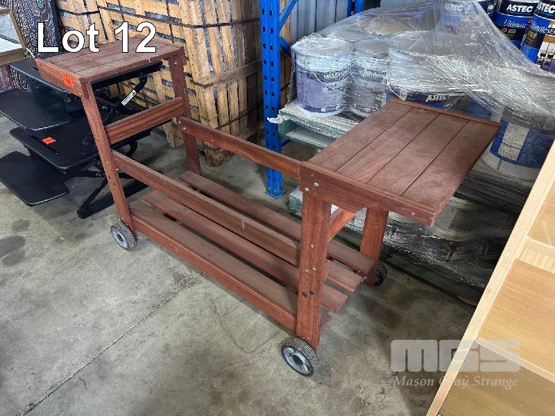 SOLID TIMBER BBQ TROLLEY, 1750 x 520 x 900mm (NO BBQ)