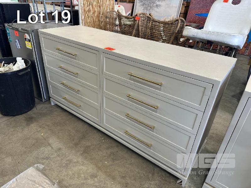 GREY STORAGE UNIT, 1600 x 500 x 830mm (H), GOLD HANDLES