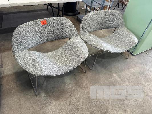 PAIR GREY CLOTH, WIDE SEATS, WITH CHROME LEGS