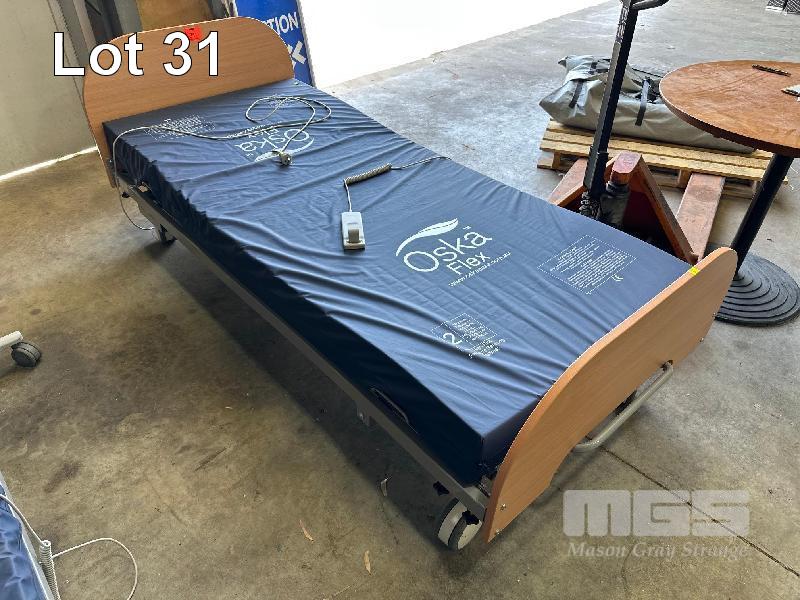 MEDICAL BED, CARE QUIP MOD: BD1580 MOTORISED POSITIONING WITH REMOTE MOBILE, INCLUDING OSKA MEDICAL MATTRESS, 240V