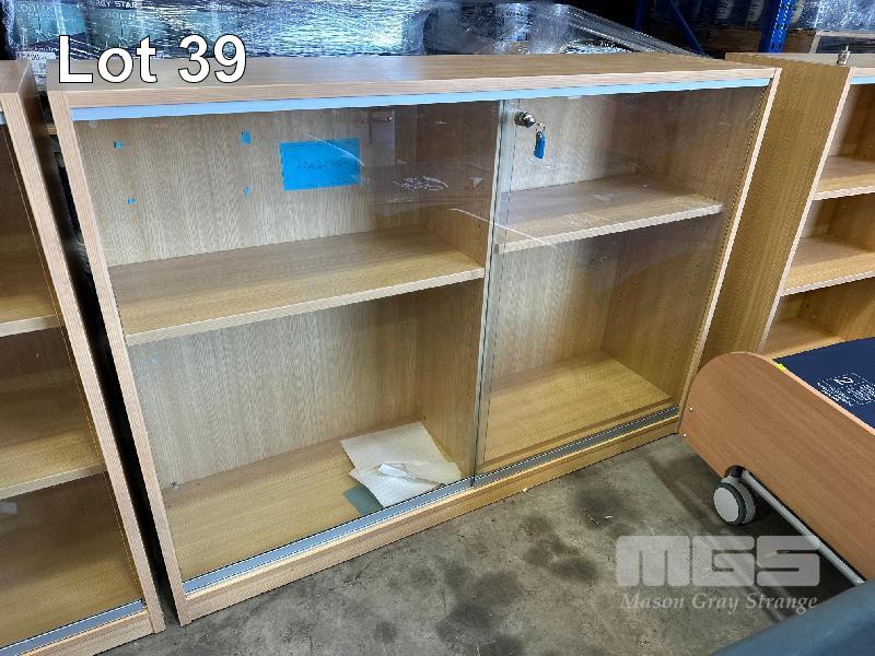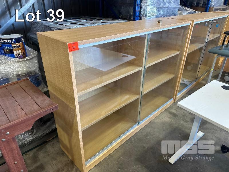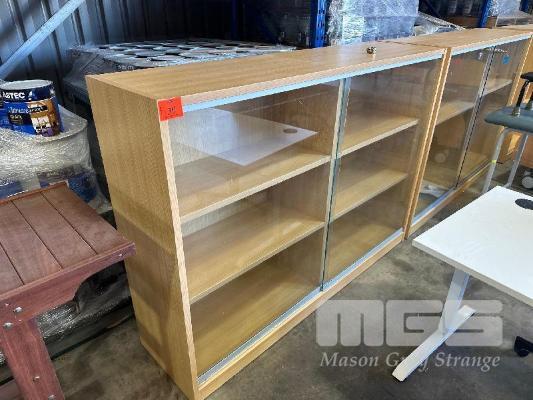 3 x TIMBER LAMINATE GLASS DISPLAY CABINETS, 1730 x 450 x 1240mm (H) 1 x MISSING GLASS)
