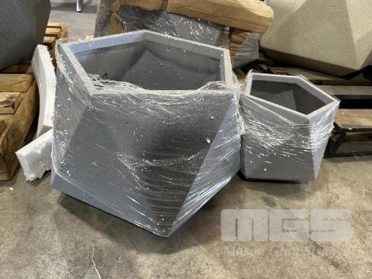 SET OF 3 CONTEMPORARY PLANTER POTS (NEW) STYLE GEO TERRAZZO SQUAT COLOUR LIGHT GREY SIZES (W W H) 1 @ 340 X 340 X 260 MM 1 @ 520 x 520 X 360H MM 1 @ 730 x 730 X 480H MM RRP $415.95 PER SET