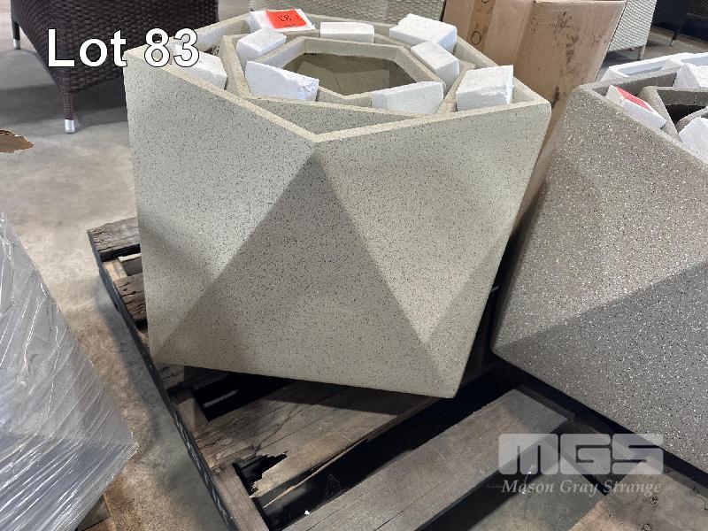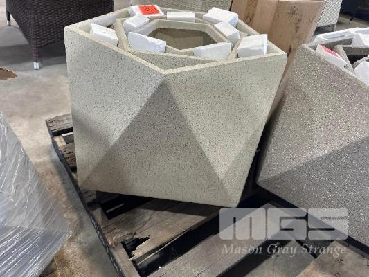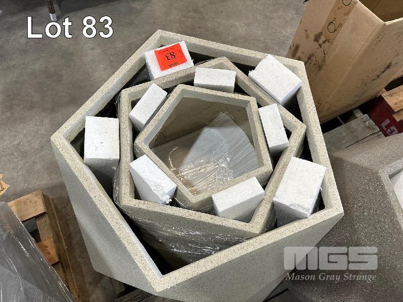 SET OF 3 CONTEMPORARY PLANTER POTS (NEW) STYLE GEO TERRAZZO SQUAT COLOUR EGGSHELL WHITE SIZES (W W H) 1 @ 340 X 340 X 260 MM 1 @ 520 x 520 X 360H MM 1 @ 730 x 730 X 480H MM RRP $415.95 PER SET