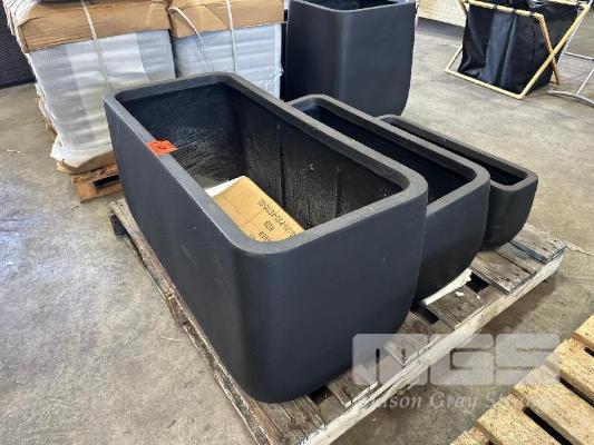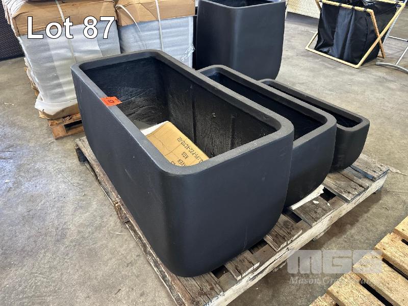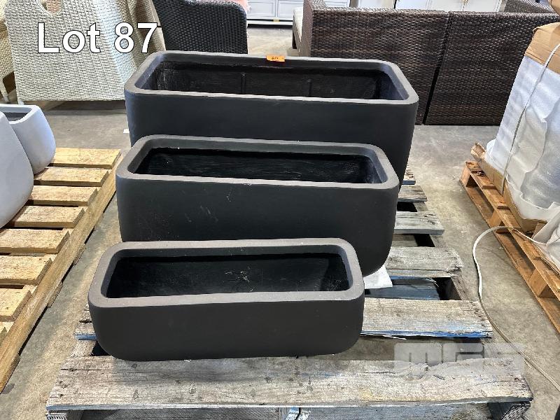 SET OF 3 CONTEMPORARY PLANTER POTS (NEW) STYLE MONARCH TROUGH COLOUR RAVEN SIZES... 1 @ 970 x 470 x 470 MM 1 @ 800 x 340 x 340 MM 1 @ 650 x 230 x 240 MM RRP $379.99