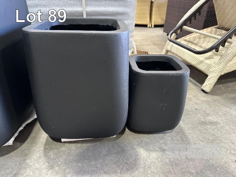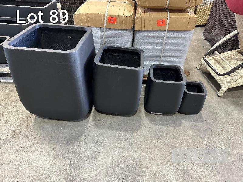 SET OF 4 CONTEMPORARY PLANTER POTS (NEW) COLOUR: BLACK 1 @ 670mm 1 @ 530mm 1 @ 390mm 1 @ 270mm
