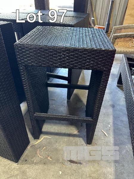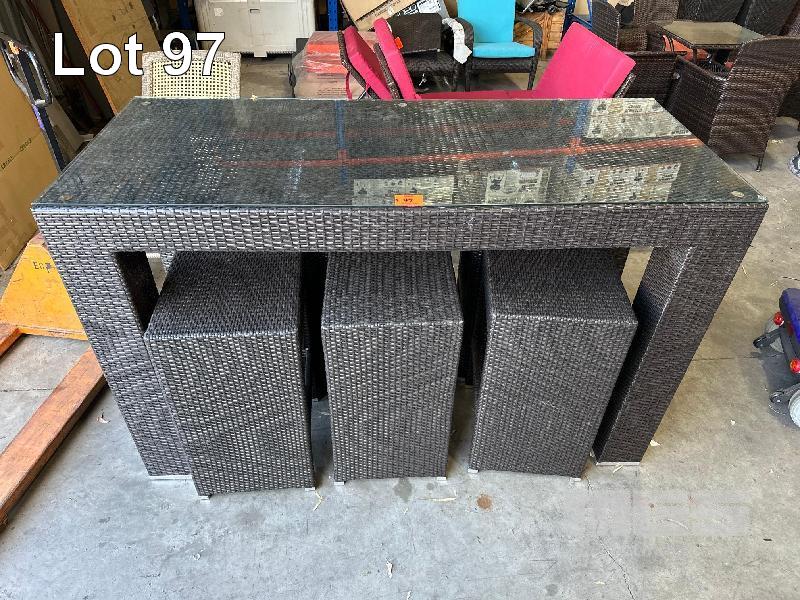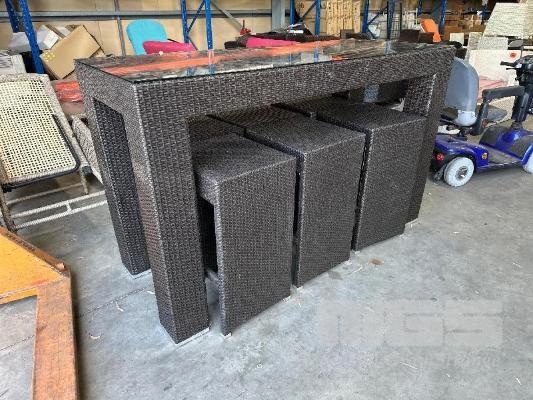 6 SEAT DRY BAR, BLACK/DARK BROWN WICKER STYLE PVC, GLASS TABLE: 1800 x 760 x 1100mm (H)