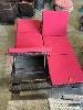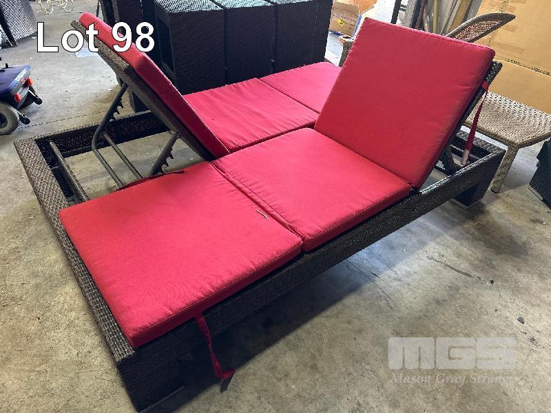 DOUBLE DAY BED, BROWN WICKER STYLE PVC, 2200 x 1500mm, RED CUSHION