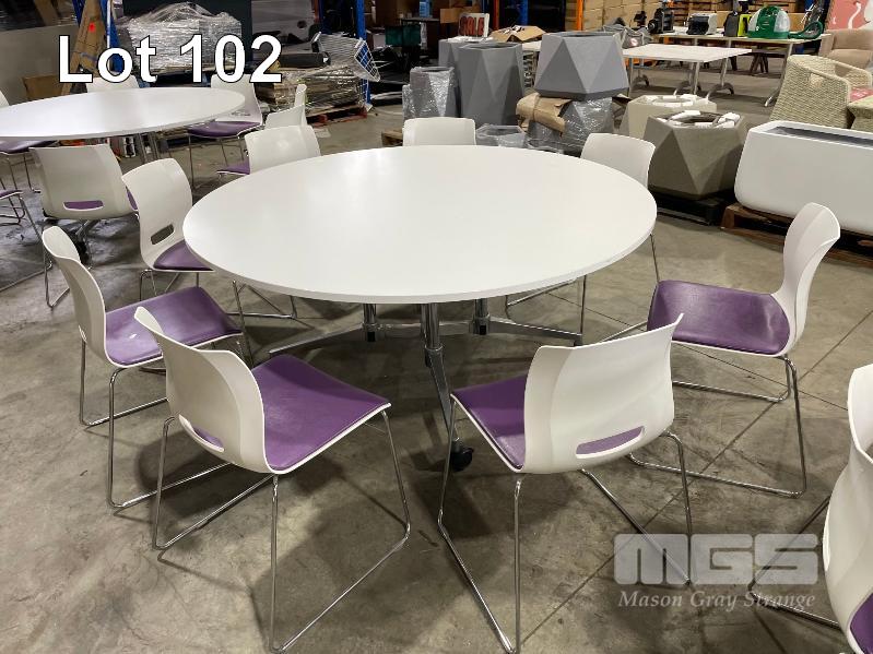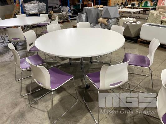 CIRCULAR TABLE, 1700mm (D), TIMBER LAMINATE,MOBILE WITH 8 x CHAIRS, WHITE/PURPLE