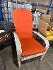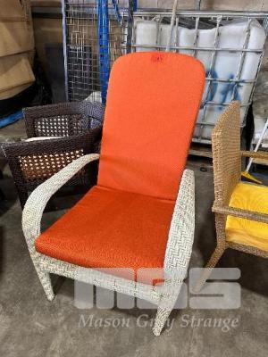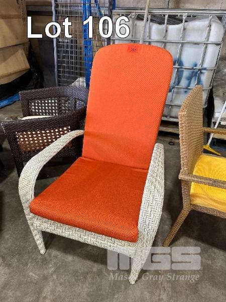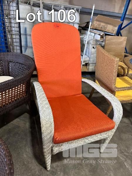 OUTDOOR CHAIR, CREAM WICKER STYLE PVC, ADJUSTABLE INCLINE, ORANGE CUSHION