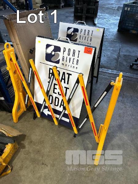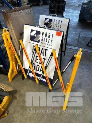 2 x DOUBLE SIDED A-FRAME SIGNS & 1 x PLASTIC CROWD CONTROL BARRIER