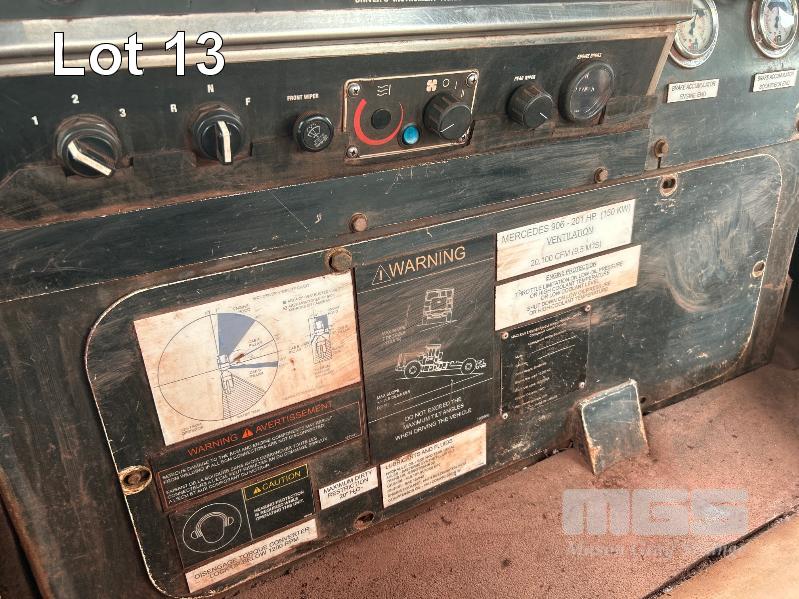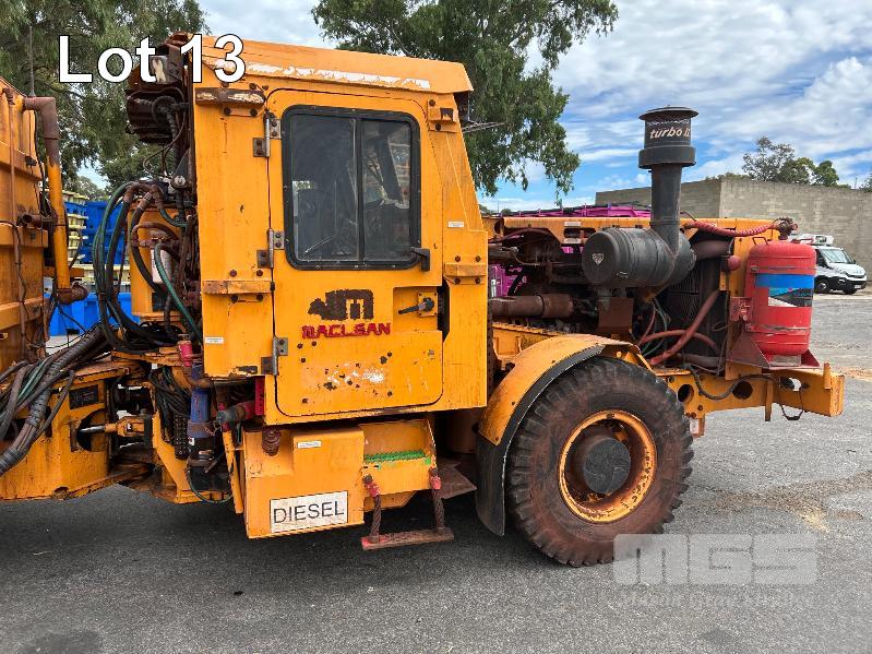 MACLEAN ARTICULATED WATER TRUCK, 4x4 MOD: MEM977 SUIT UNDERGROUND MINING S/NO: WCS-007 POWERED BY MERCEDES BENZ MODEL:906 6 CYLINDER TURBO DIESEL ENGINE RATED POWER: 150kw (201 HP), , HOURS: 7125 SHOWING, DIGITAL METER HOURS: 7198 SHOWING, DIAL METER ROPS/FOPS, FITTED WITH STEEL WATER TANK TANK SIZE: 3900mm(H) x 2200mm(W) x 1450mm(H) TELESCOPIC WATER CANNON, 4 STAGE WITH HETRONIC REMOTE CONTROL, HIGH PRESSURE WATER PUMP, SPRAY BARS, RETRACTABLE HIGH PRESSURE HOSE REEL FIRE SUPPRESSION SYSTEM, BATTERY ISOLATION SWITCHES, MULTI REAR VIEW & SIDE VIEW CAMERAS & LCD SCREENS, TYRE SIZE: 12.00R 20 GROSS WEIGHT: 22,450kg