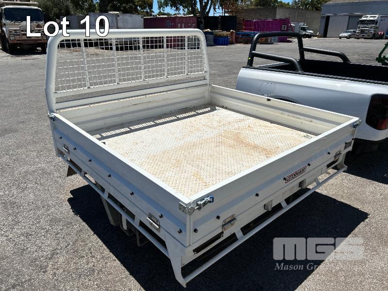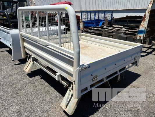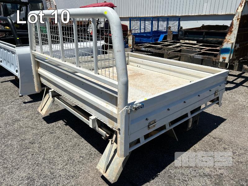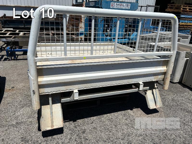 STEEL UTE TRAY, GITSHAM ROLL BAR & CARGO BARRIER, HINGED SIDES & REAR, UNDER TRAY TOOL BOX & WATER TANK WHITE DUCO SIZE: 1850 x 1950mm (H)