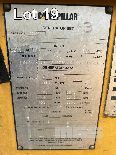GENSET, CATERPILLAR MOD: 3512 KVA RATING: 1275 KW RATING: 1020 3 PHASE, POWERED BY CATERPILLAR V12 TURBO DIESEL ENGINE MOD: 3512 S/NO: 24Z06290 RATED POWER: 1462HP (1087kw) HOURS: 1817 SHOWING WITH LARGE RADIATOR & FITTING