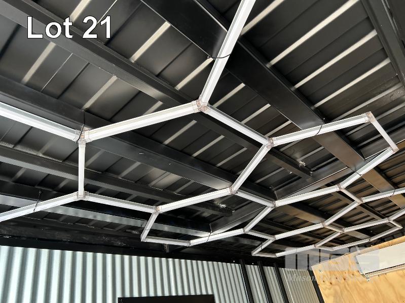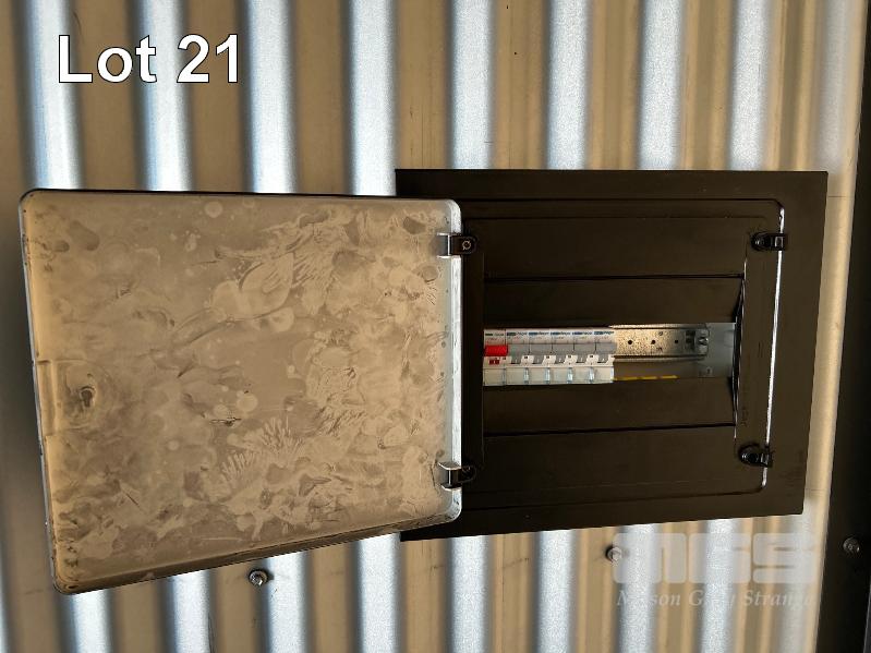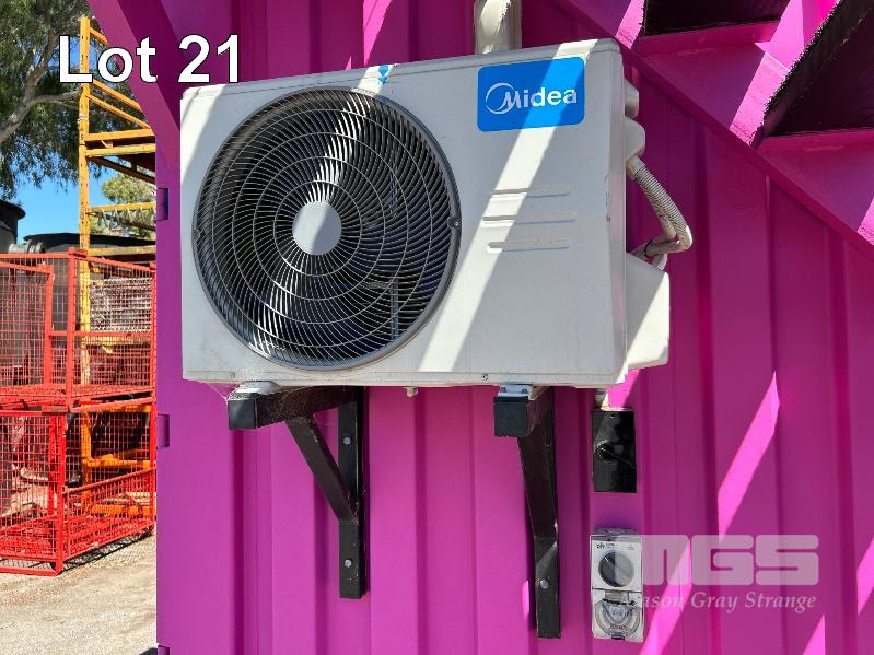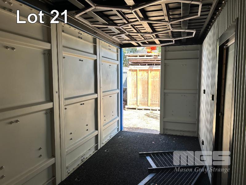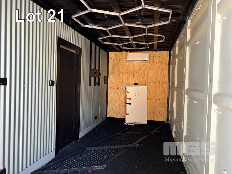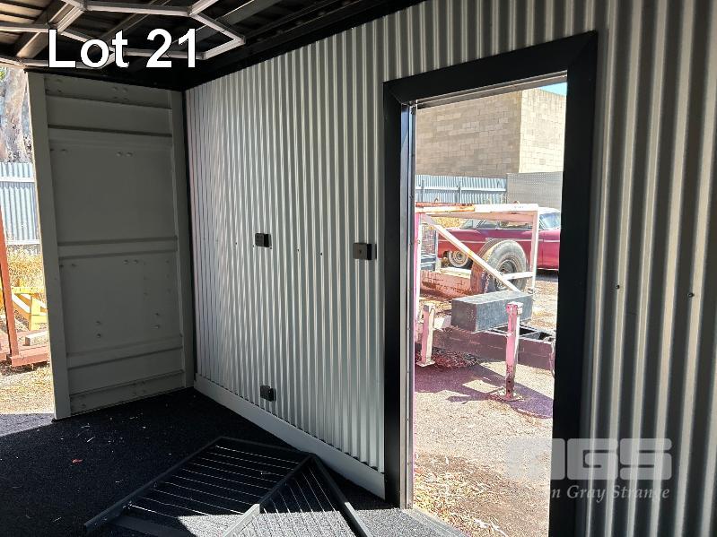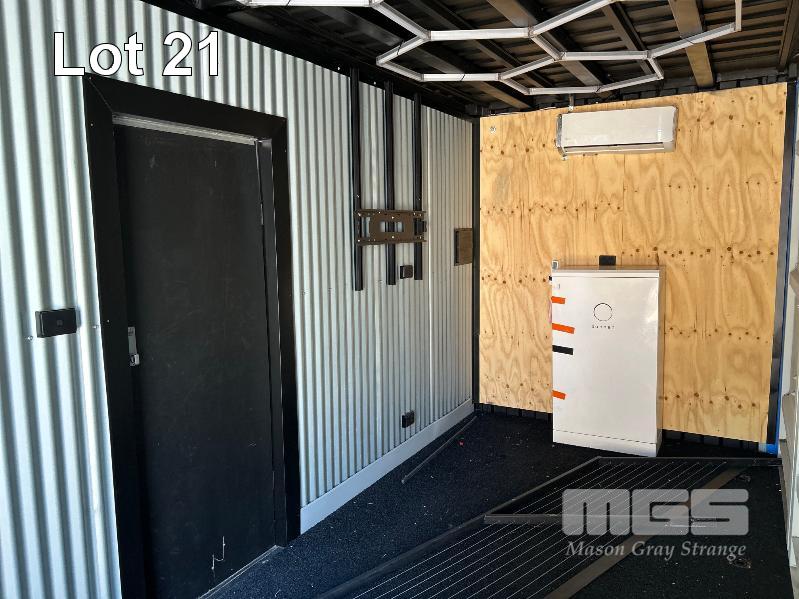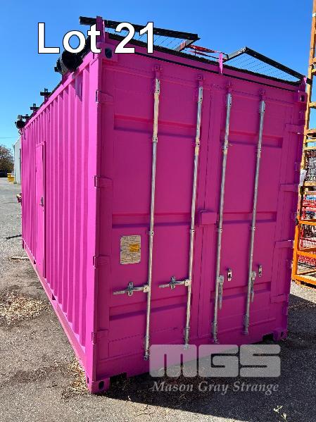 20 FT SHIPPING CONTAINER, PINK FITTED OUT WITH WITH TOP VEIWING PLATFORM INCORPERATING REMOVABLE HAND RAILS & END MOUNT STEEL STAIR CASE, 240V POWER FUSE BOX & GPO'S, LIGHTING, REVERSE CYCLE AIR CON. DOUBLE END DOORS, 4 x SIDE MOUT DOORS ON ONE SIDE & SINGLE ENTRY DOOR ON THE OTHER SIDE, WITH KEYPAD LOCK.