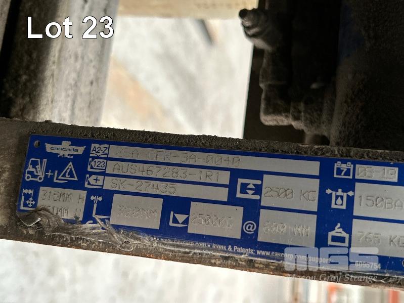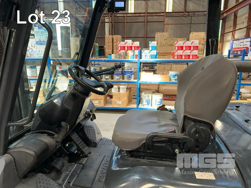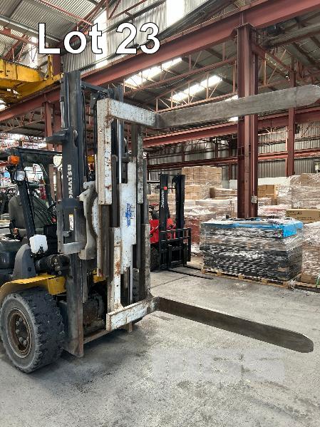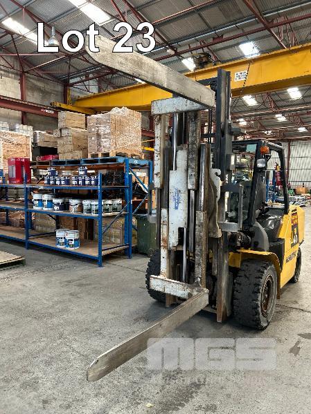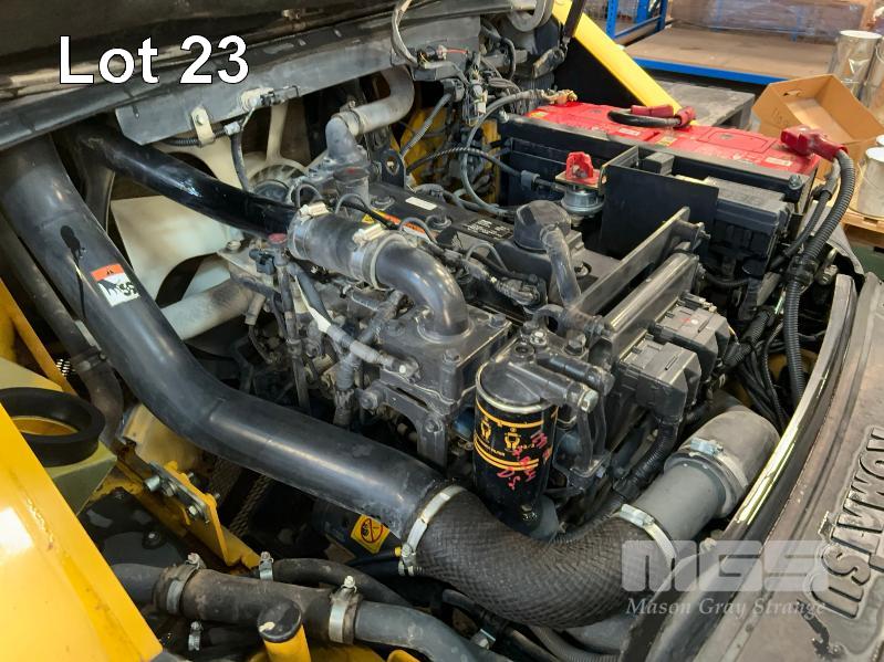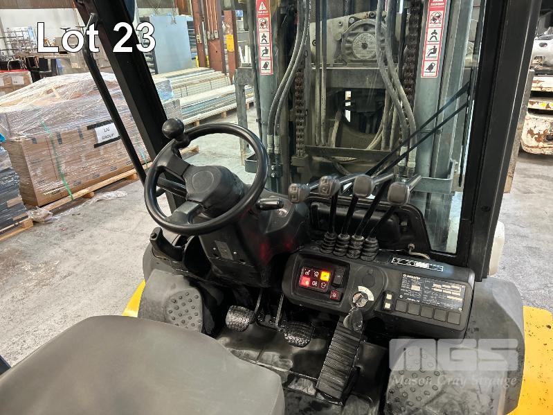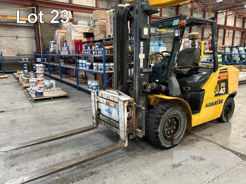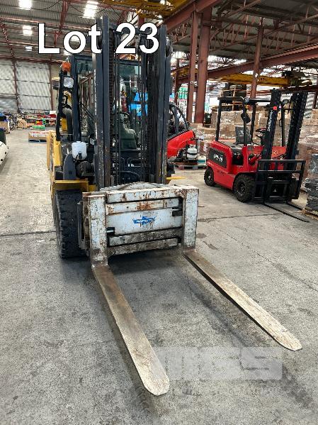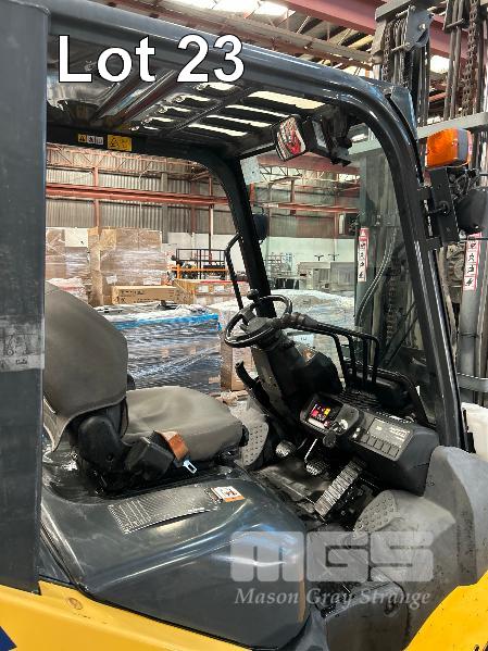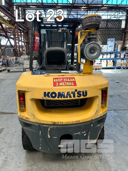 2019 KOMATSU FORKLIFT, 4 TONNE MOD: FD40-1 REG: S00 SHM (SA) S/NO: 139328 UNIT NO: K24281 MAX LIFT CAP: 2,500kg (WITH ROTATOR) FITTED WITH CASCADE 360 DEGREE ROTATOR ATTACHMENT MOD: 25A-CFR-3A-0040 MAX LIFT HEIGHT: 3500mm FORK TYNE SHIFT EXTRA WIDE 2 STAGE MAST 4 CYLINDER DIESEL ENGINE HOUR: 1,360 SHOWING FITTED WITH SAFETY MANAGEMENT SYSTEM SOLID TYRES, ACCU TILT FORK LEVEL INDICATOR 1 x KEY KEY #52