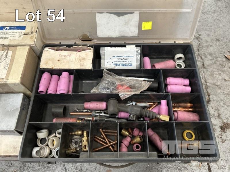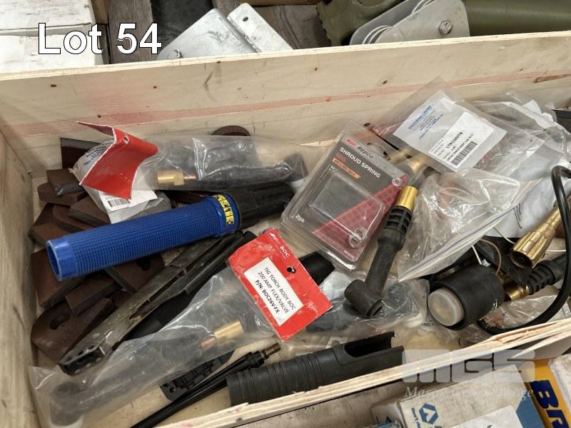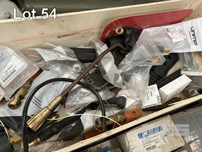 WELDING EQUIPMENT, SUIT OXY, ARC,. MIG INCLUDING TORCHES, SHROUDS, CONNECTORS, ETC FASTENERS, PULLEYS, TAIL SHAFT, PINS, ETC 1 XPALLET
