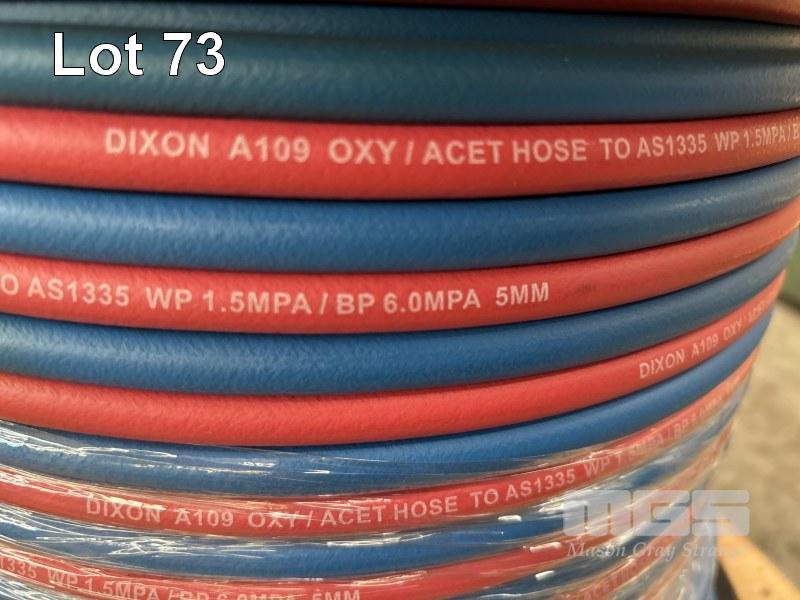 OXY/ACETYLENE HOSE, DIXON 5mm, BP 6.0MPA 1 x BLACK PLASTIC SPOOL, 100m APPROX