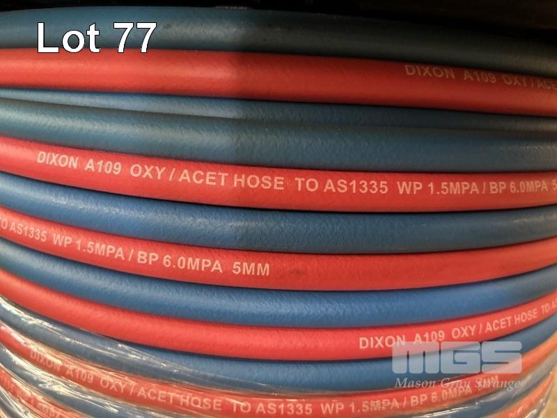 OXY/ACETYLENE HOSE, DIXON 5mm, BP 6.0MPA 2 x BLACK PLASTIC SPOOLS, 100m EACH APPROX